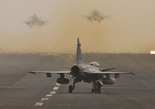 The Swedish Air Force supplied a number of their JAS 39 Gripens of F21