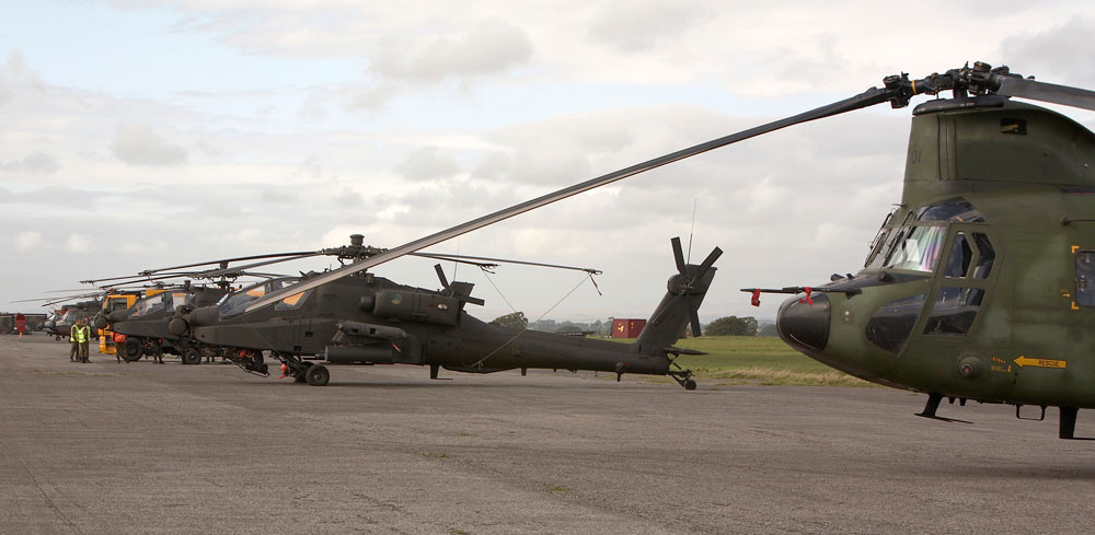 300 Sqn, Three AH 64 Apaches of 301 Sqn and a single CH47 Chinook